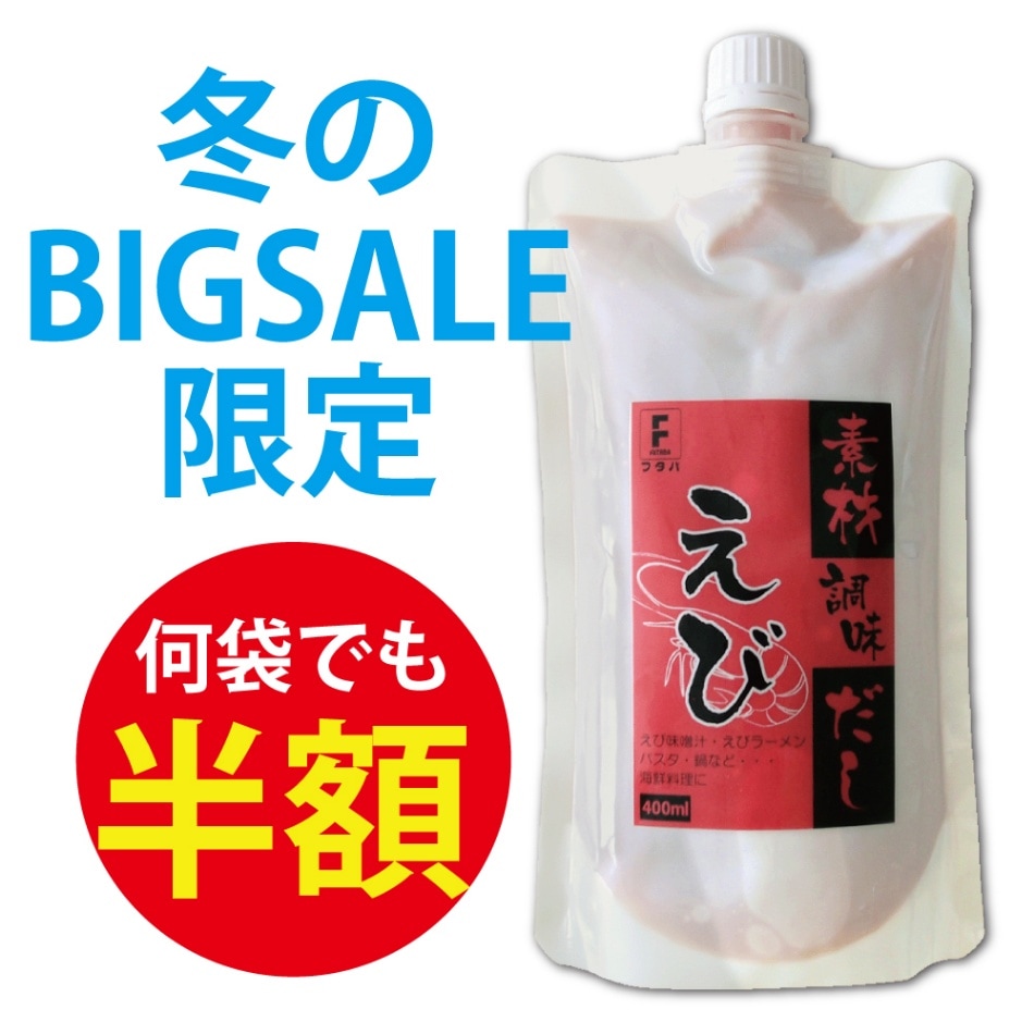 【半額】★冬のBIGSALE★ 素材調味だし えび400ml