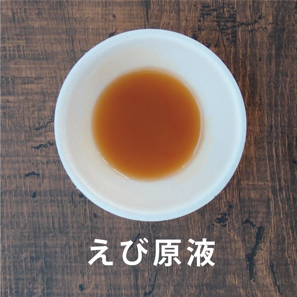 - 【商品の特徴】えび丸ごとの旨味を余すことなく使用しています。濃厚なえびみそに乾煎りの香ばしさ、凝縮した甘味もプラスし、味に厚みを出しています。濃縮タイプの液体だしです。